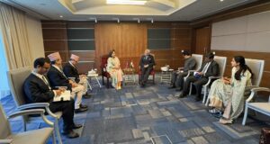 Held a productive meeting with H.E. Dr. S. Jaishankar, Minister of External Affairs of India, on the sidelines of the 8th Indian Ocean Conference. I thanked H.E. Dr. S. Jaishankar for the continued support for Nepal’s development and recent progress on issues related with trade transit and water resources development.